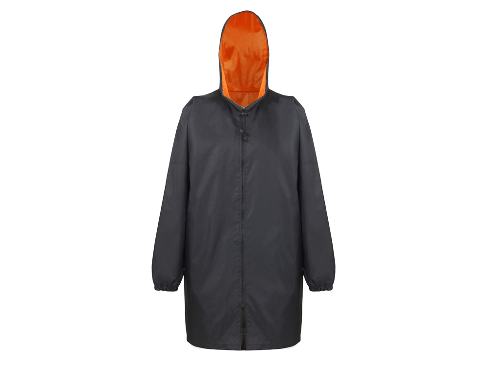 Стильный и практичный дождевик, созданный для активного образа жизни и эффективного промо. Его двусторонний дизайн сочетает простоту и яркость: черная сторона — для повседневной сдержанности, цветная — для привлечения внимания. Изготовлен из легкого, но плотного водоотталкивающего материала, который не теряет форму в непогоду. - Двустороннее ношение — мгновенно меняйте образ, подстраиваясь под настроение или событие. - Полная защита от непогоды: молния, регулируемый капюшон с кулисой, эластичные манжеты на рукавах. - Универсальный дизайн унисекс – подходит как мужчинам так и женщинам Трафаретная печать (1 цвет (цветные изделия)) на данный товар осуществляется бесплатно. Оплачивается только настройка оборудования в размере 9100 рублей на весь тираж.