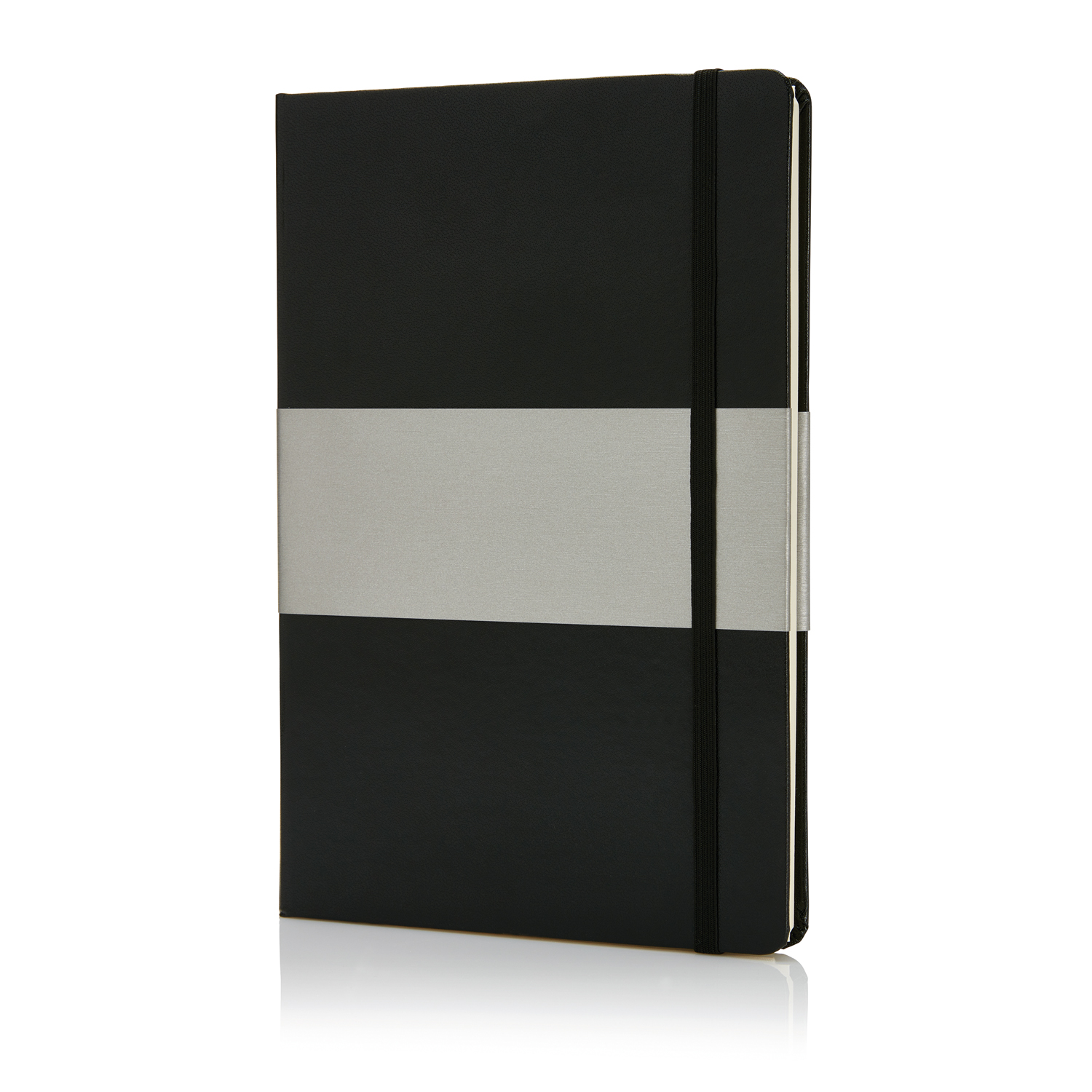 Блокнот в твердой обложке формата A5 с фиксирующей резинкой. Обложка из дизайнерской бумаги со скругленными углами, 80 листов из бумаги желтого цвета, 80 г/м2.