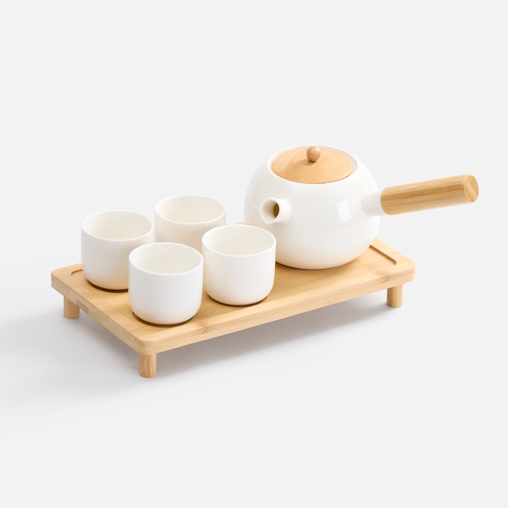 Чайник с боковой ручкой напоминает традиционный кюсу — японский заварочный чайник. Он выглядит утонченно и элегантно, а благодаря ручке, расположенной под углом почти 90 градусов, позволяет легко и аккуратно разливать чай, при этом буквально одним движением руки. Вытянутая форма чашки позволяет максимально насладиться ароматом, а небольшой объем помогает напитку быстрее остыть — чтобы не обжечься при глотке. Подставка делает подачу аккуратной и защищает стол от капель.