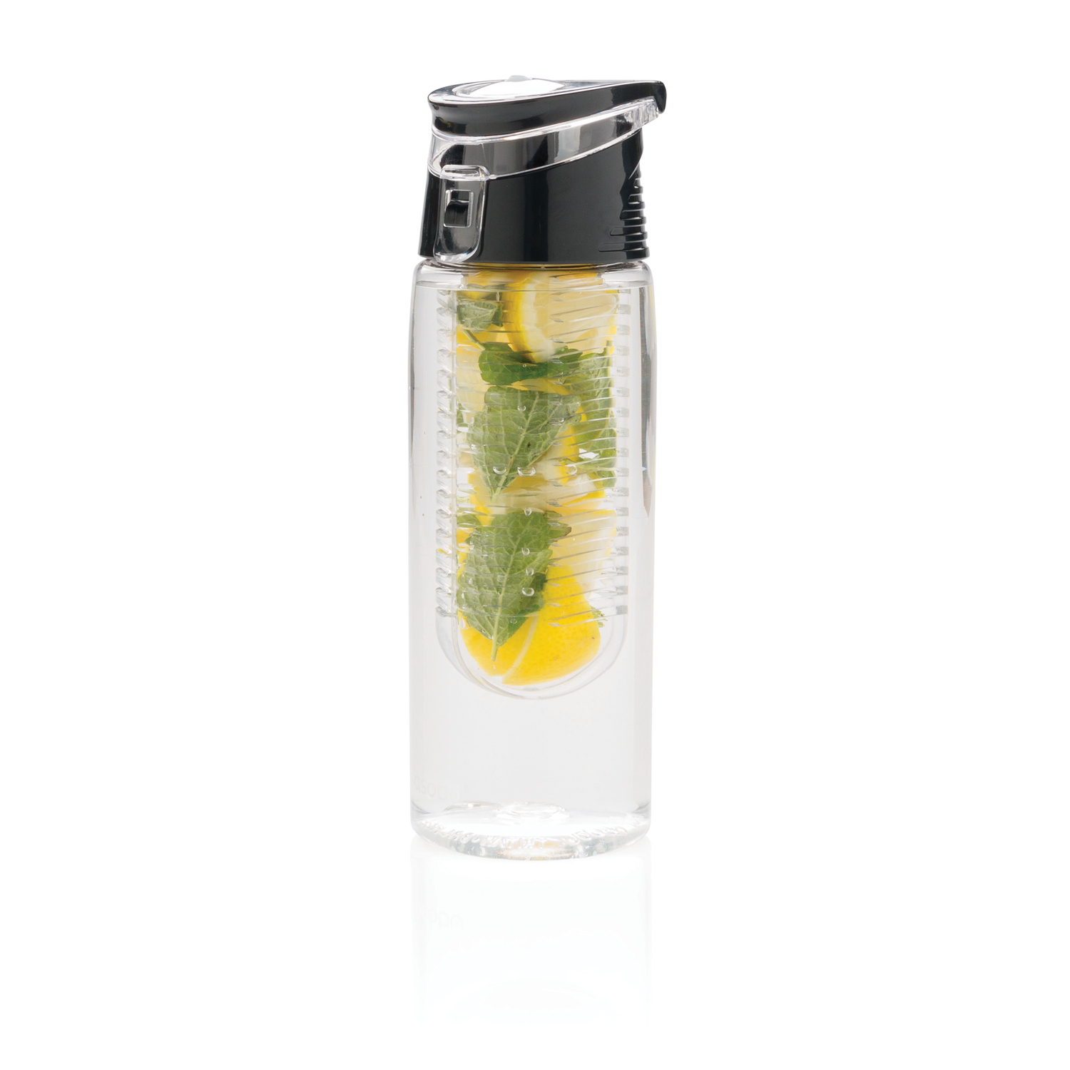 Стильная бутылка для воды Lockable с контейнером отлично подходит для приготовления фруктовых или травяных напитков. Корпус изготовлен из износостойкого и экологичного материала Tritan, а крышка выполнена из ABS-пластика. Защита от проливания. Объем - 700 мл.