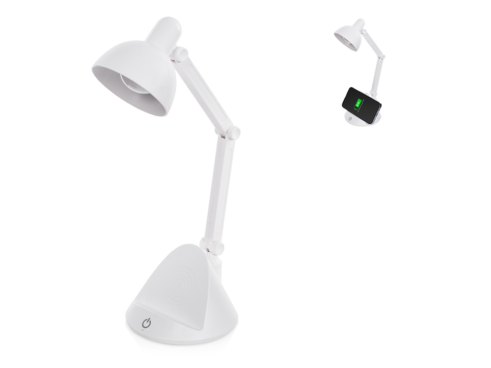 Лампа Bendy, напоминающая большую настольную, куда сложнее, чем кажется на первый взгляд! Не просто светит, но и заряжает смартфон при помощи встроенной беспроводной зарядки. Светильник компактный, его можно зафиксировать в различных положениях. Имеет три режима освещения — теплый, нейтральный и холодный. - беспроводная зарядка Qi-совместимых устройств - три режима освещения: теплый, нейтральный, холодный - фиксируется в различных положениях - диммер: при длительном нажатии интенсивность света регулируется Тампопечать (1 цвет (белые изделия)) на данный товар осуществляется бесплатно. Оплачивается только настройка оборудования в размере 4500 рублей на весь тираж.