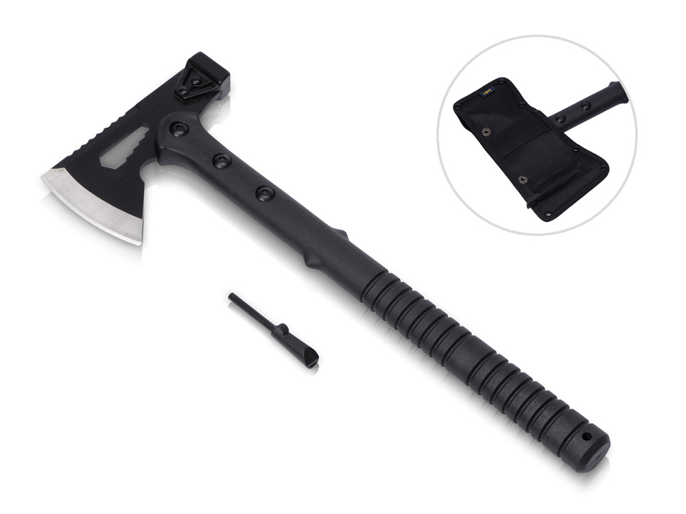 Топор 4-в-1 Lumber бренда roq выполнен из нержавеющей стали 420 марки. Товар поставляется в нейлоновом чехле. В чехле есть специальный кармашек с огнивом. Чтобы высечь искры для разжигания костра, возьмите огниво за рукоять в одну руку и проведите лезвием по стержню огнива под углом в 90 градусов в направлении от себя. В целях безопасности не высекайте искры в помещении или около легко воспламеняемых материалов. Поставляется с чехлом в картонной коробке. - Топор - Молоток - Шестигранник на 5 размеров (8/10/12/14/16 мм) - Огниво Гравировка (оптоволоконный лазер) (Без чернения) на данный товар осуществляется бесплатно. Оплачивается только настройка оборудования в размере 2700 рублей на весь тираж.