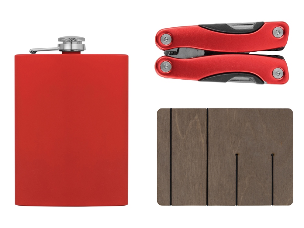 Подарочный набор Путешественник 2.0. Хит среди наборов для туризма снова в нашем ассортименте! В набор входят мультиинструмент и фляжка, которые пригодятся как в городе, так и на природе. Универсальный инструмент поможет при поломке автомобиля на трассе, для мелкого ремонта и пригодится в походе. Небольшой размер и малый вес позволяют носить его на ремне брюк. Фляжка с приятным на ощупь покрытием soft-touch выполнена из качественной нержавеющей стали. Персонализировать фляжку можно с использованием гравировки и УФ-печати. - практичный набор для похода; - мультиинструмент в индивидуальном чехле; - объём фляжки: 240 мл; - деревянный ложемент.
