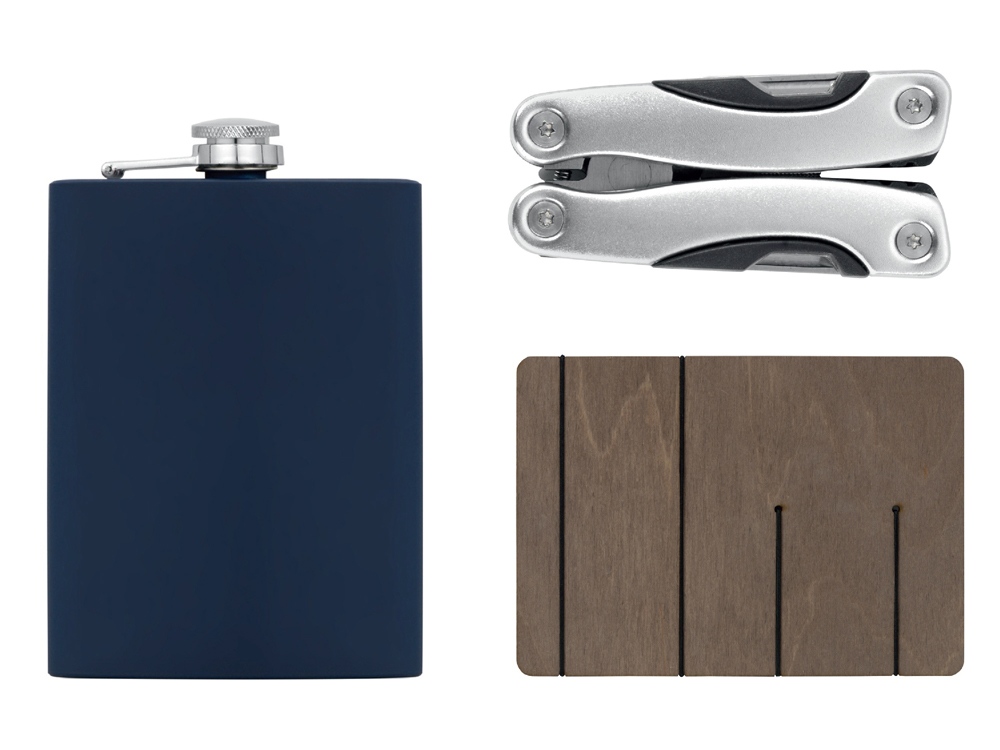 Подарочный набор Путешественник 2.0. Хит среди наборов для туризма снова в нашем ассортименте! В набор входят мультиинструмент и фляжка, которые пригодятся как в городе, так и на природе. Универсальный инструмент поможет при поломке автомобиля на трассе, для мелкого ремонта и пригодится в походе. Небольшой размер и малый вес позволяют носить его на ремне брюк. Фляжка с приятным на ощупь покрытием soft-touch выполнена из качественной нержавеющей стали. Персонализировать фляжку можно с использованием гравировки и УФ-печати. - практичный набор для похода; - мультиинструмент в индивидуальном чехле; - объём фляжки: 240 мл; - деревянный ложемент.