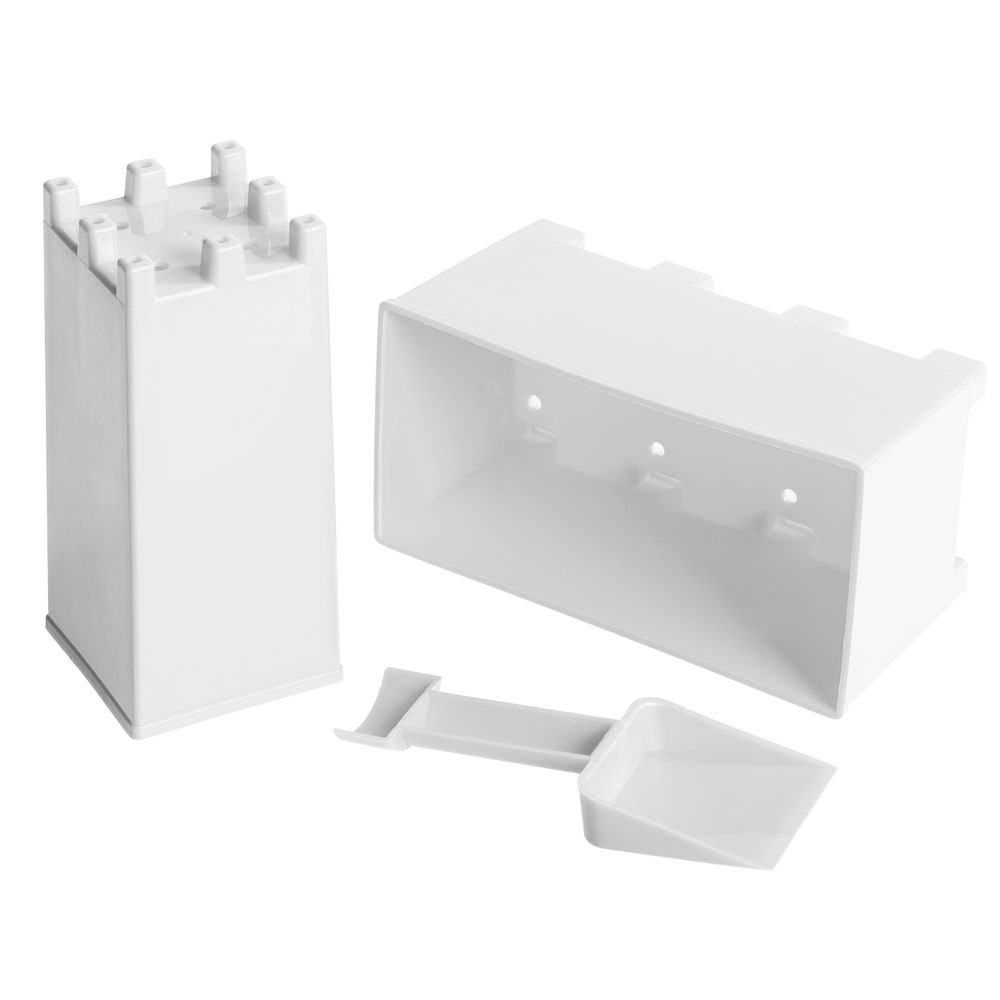 Чем заняться погожим днем на улице? Добавить драйва обычной прогулке с детьми или загородному корпоративу с коллегами позволит набор для лепки замков. С его помощью можно возводить целые города. Различные формы используются для постройки башен, а специальным наконечником лопатки удобно оформлять окна и арки. Отличный подарок для тимбилдинга на природе.