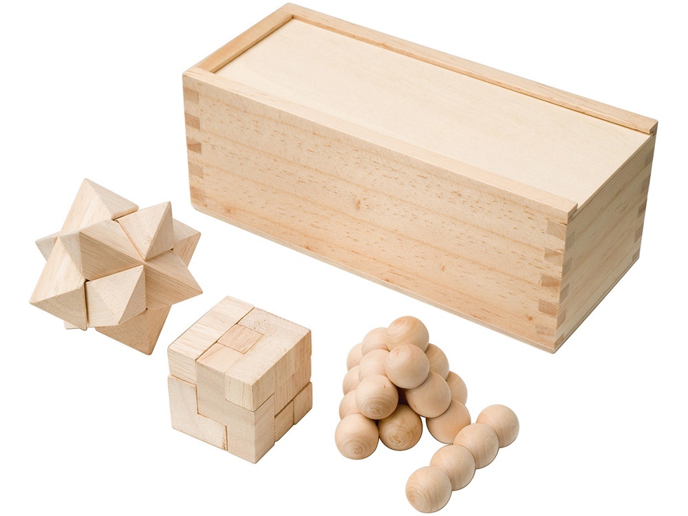 Набор головоломок. 3 головоломки в подарочной деревянной коробке. Пирамидка 5,4 х 5,4 см Шестигранник 6 х 6 см Куб 4,5 х 4,5 см