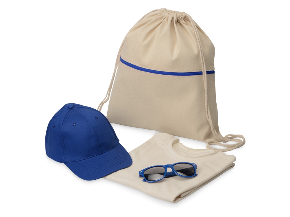 Набор для прогулок и активного отдыха. Набор состоит: - Рюкзак-мешок Lark хлопковый с цветной молнией; - Очки солнцезащитные Sun ray; - Бейсболка Detroit; - Футболка Pure из неокрашенного хлопка, мужская. Тампопечать (1 цвет (цветные изделия)) на данный товар осуществляется бесплатно. Оплачивается только настройка оборудования в размере 4500 рублей на весь тираж.