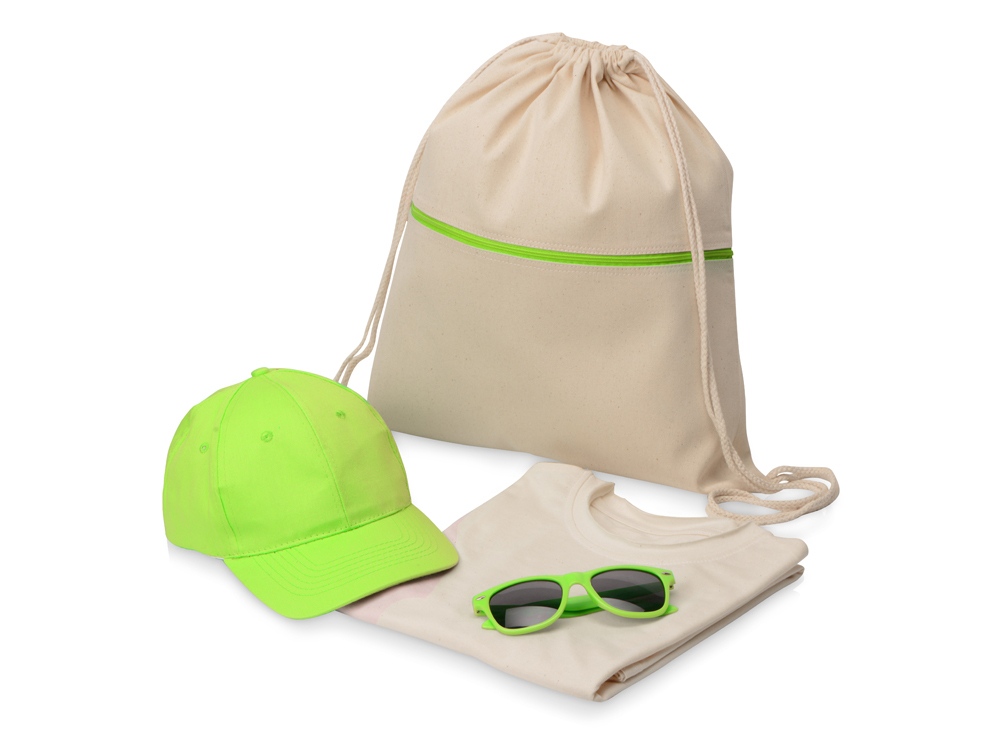 Набор для прогулок и активного отдыха. Набор состоит: - Рюкзак-мешок Lark хлопковый с цветной молнией; - Очки солнцезащитные Sun ray; - Бейсболка Detroit; - Футболка Pure из неокрашенного хлопка, мужская. Тампопечать (1 цвет (цветные изделия)) на данный товар осуществляется бесплатно. Оплачивается только настройка оборудования в размере 4500 рублей на весь тираж.