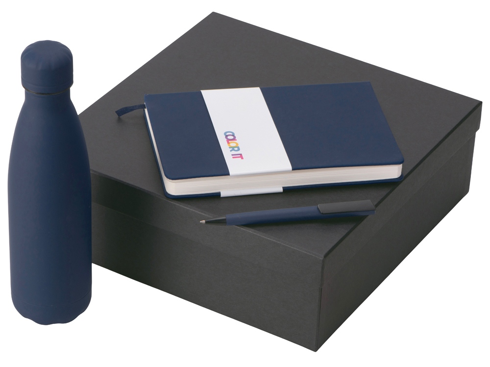 Color It — линейка, в которую входят хиты мерча в десяти самых популярных цветах. Еще никогда собрать сет под свой брендбук не было так просто. Широкая цветовая палитра серии позволяет создать идеальный набор в едином оттенке Pantone. Все товары имеют тактильно приятное покрытие софт-тач. Сет поставляется в коробке: мы продумали все, включая подарочную упаковку, за вас — осталось нанести лого! Классическая форма термобутылки сочетается с продуманной и технологичной конструкцией: вакуумная теплоизоляция и двойные стенки бутылки обеспечивают качественное сохранение температуры напитка до 24-х часов! Блокнот имеет твёрдую обложку и 256 страниц в линейку, даты не указаны, что позволяет начать вести блокнот в любой удобный день года. На нахзаце расположен карман для мелочей. Ляссе окрашено в тон обложки. На обложке блокнота есть магнитный держатель для металлических ручек. Тонкое письмо ручки обеспечивается пишущим узлом с толщиной письма 0,5 мм с нажимным механизмом. - бумага соответствует стандартам FSC; - софт-тач покрытие на всех предметах набора; - объём бутылки: 500 мл; - подарочная упаковка с дизайнерской бумагой уже включена в набор. Трафаретная печать (1 цвет (цветные изделия)) на данный товар осуществляется бесплатно. Оплачивается только настройка оборудования в размере 9100 рублей на весь тираж.