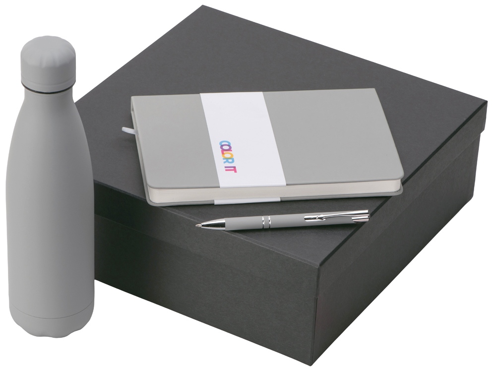Color It — линейка, в которую входят хиты мерча в десяти самых популярных цветах. Еще никогда собрать сет под свой брендбук не было так просто. Широкая цветовая палитра серии позволяет создать идеальный набор в едином оттенке Pantone. Все товары имеют тактильно приятное покрытие софт-тач. Сет поставляется в коробке: мы продумали все, включая подарочную упаковку, за вас — осталось нанести лого! Классическая форма термобутылки сочетается с продуманной и технологичной конструкцией: вакуумная теплоизоляция и двойные стенки бутылки обеспечивают качественное сохранение температуры напитка до 24-х часов! Бизнес-блокнот в твёрдой обложке имеет ляссе в тон обложки. Бумажный блок разлинован в линейку и выполнен из бумаги, полученной из древесины из специальных восполняемых лесных ресурсов, имеет сертификат FSC. Шариковая ручка имеет сменный стержень, поэтому такой мерч прослужит дольше обычной одноразовой ручки, долго напоминая о вас клиентам. - софт-тач покрытие на всех предметах набора; - объём бутылки: 500 мл; - блокнот А5 128 листов; - ручка с необычным слайдером; - подарочная упаковка из картона, оклеенного дизайнерской бумагой уже включена в набор. График теплопотерь при температуре окружающей среды ≈ 25° 1ч. 2ч. 3ч. 4ч. 5ч. 6ч. 7ч. 8ч. 24ч. 50° 60° 70° 80° 90° 100° Трафаретная печать (1 цвет (цветные изделия)) на данный товар осуществляется бесплатно. Оплачивается только настройка оборудования в размере 9100 рублей на весь тираж.
