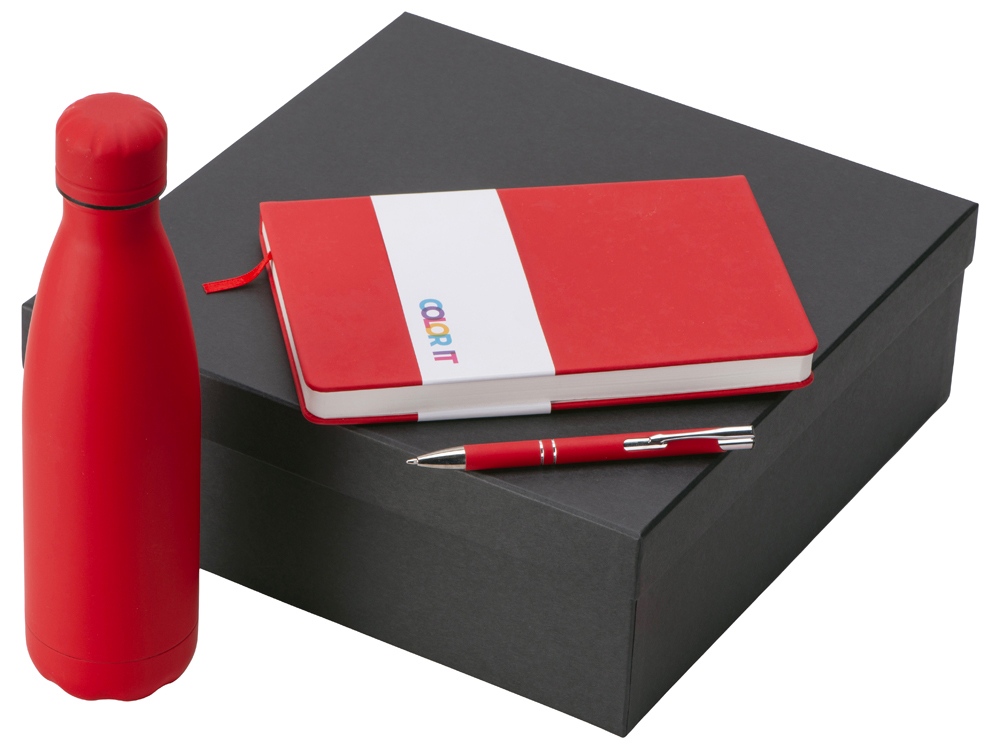Color It — линейка, в которую входят хиты мерча в десяти самых популярных цветах. Еще никогда собрать сет под свой брендбук не было так просто. Широкая цветовая палитра серии позволяет создать идеальный набор в едином оттенке Pantone. Все товары имеют тактильно приятное покрытие софт-тач. Сет поставляется в коробке: мы продумали все, включая подарочную упаковку, за вас — осталось нанести лого! Классическая форма термобутылки сочетается с продуманной и технологичной конструкцией: вакуумная теплоизоляция и двойные стенки бутылки обеспечивают качественное сохранение температуры напитка до 24-х часов! Бизнес-блокнот в твёрдой обложке имеет ляссе в тон обложки. Бумажный блок разлинован в линейку и выполнен из бумаги, полученной из древесины из специальных восполняемых лесных ресурсов, имеет сертификат FSC. Шариковая ручка имеет сменный стержень, поэтому такой мерч прослужит дольше обычной одноразовой ручки, долго напоминая о вас клиентам. - софт-тач покрытие на всех предметах набора; - объём бутылки: 500 мл; - блокнот А5 128 листов; - ручка с необычным слайдером; - подарочная упаковка из картона, оклеенного дизайнерской бумагой уже включена в набор. График теплопотерь при температуре окружающей среды ≈ 25° 1ч. 2ч. 3ч. 4ч. 5ч. 6ч. 7ч. 8ч. 24ч. 50° 60° 70° 80° 90° 100° Трафаретная печать (1 цвет (цветные изделия)) на данный товар осуществляется бесплатно. Оплачивается только настройка оборудования в размере 9100 рублей на весь тираж.