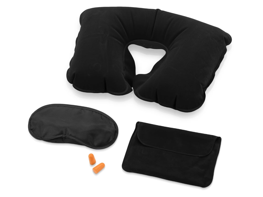 Замечательный дорожный набор включает в себя надувную подушку, маску на глаза и беруши, все это упаковано в специальный чехол. Приятная на ощупь поверхность набора обеспечит комфортный сон в любой обстановке. Термотрансфер (1 цвет (цветные изделия)) на данный товар осуществляется бесплатно. Оплачивается только настройка оборудования в размере 10000 рублей на весь тираж.