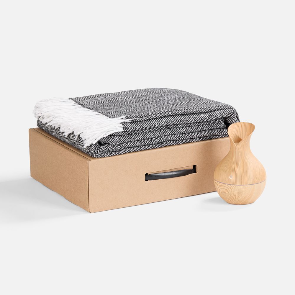 Мягкий плед нежных оттенков подарит тепло и комфорт, а изящный увлажнитель наполнит воздух свежестью и приятным ароматом. Этот набор — гармония красоты и функциональности, где каждый момент посвящен ценному отдыху и расслаблению.
