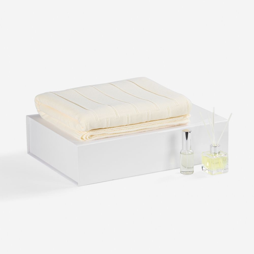 Мягкий плед с элегантным узором подарит комфорт и тепло, а стильный диффузор наполнит пространство нежными, свежими нотами, превращая каждый момент в маленький ритуал наслаждения.