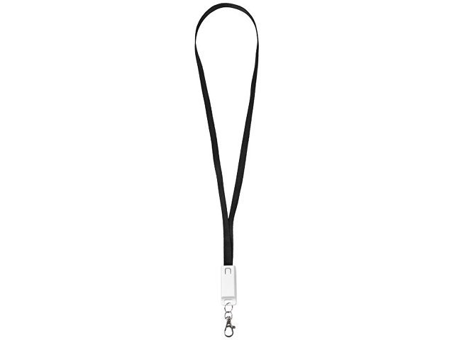 Кабель для зарядки Trace «3-в-1» со шнурком. Кабель для зарядки Trace «3-в-1» со шнурком, коннектором Type C и двойным совместимым коннектором «2-в-1» для телефонов с ОС Android и iOS. Вращающийся зажим отлично подходит для крепления бейджа. Пригоден только для зарядки. Полиэстер.