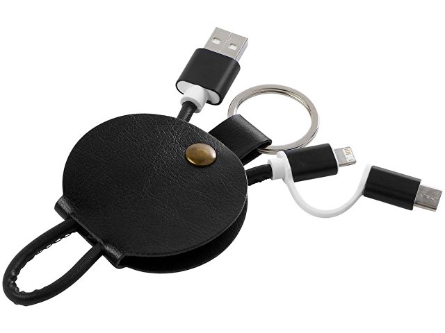 Кабель для зарядки Gist 3-в-1. Кабель для зарядки Gist 3-в-1 закрыт мягким защитным манжетом и оснащен разъемом USB типа С и двойным разъемом 2-в-1, подходящим как для устройств с Apple iOS, так и с Android. С помощью имеющегося кольца зарядный комплект можно поцепить на ключи или сумку. Длина кабеля: 20 cm. ПУ.