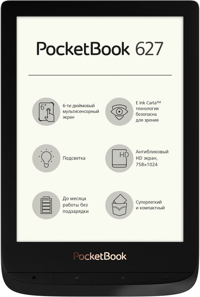 PocketBook 627 — модель среднего класса в ультракомпактном корпусе с полным набором современных функций.