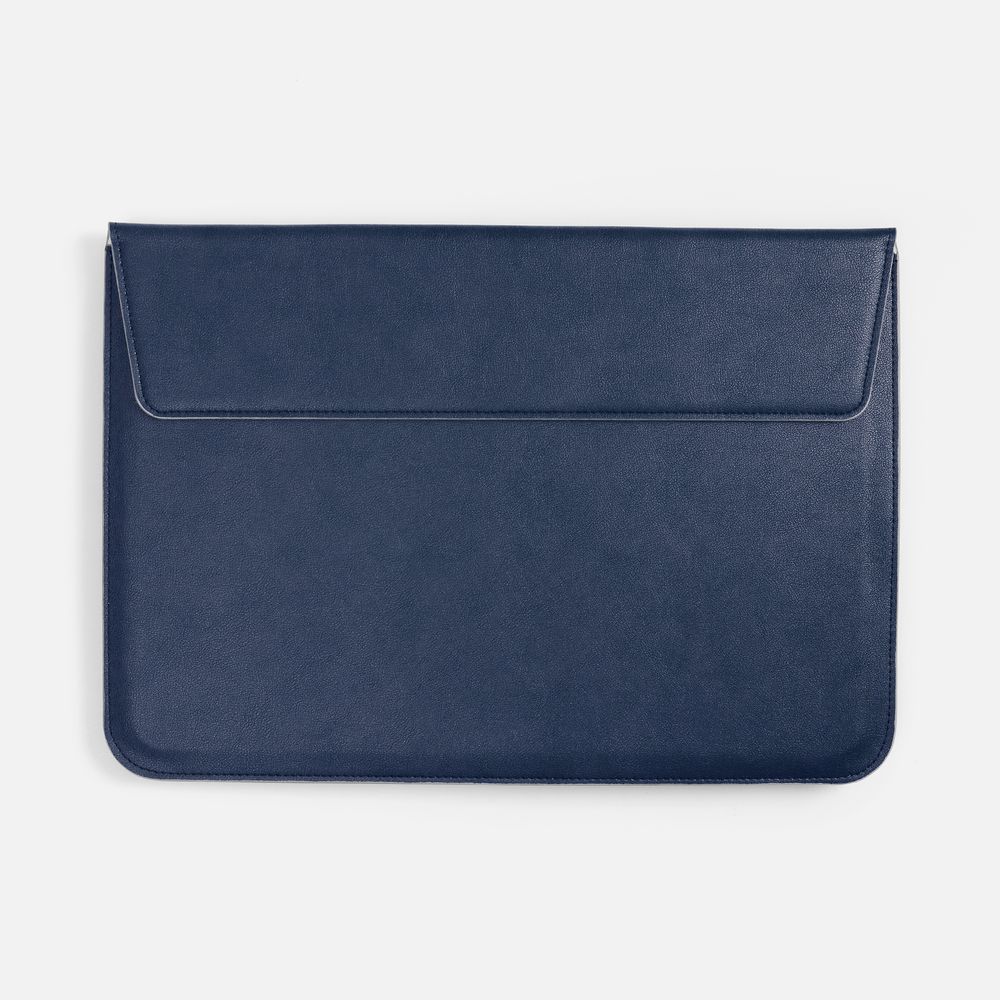 Чехол для ноутбука с диагональю до 15,6 выполнен из материала Petrus, синего цвета, дополнен окрашенным срезом края серого цвета.