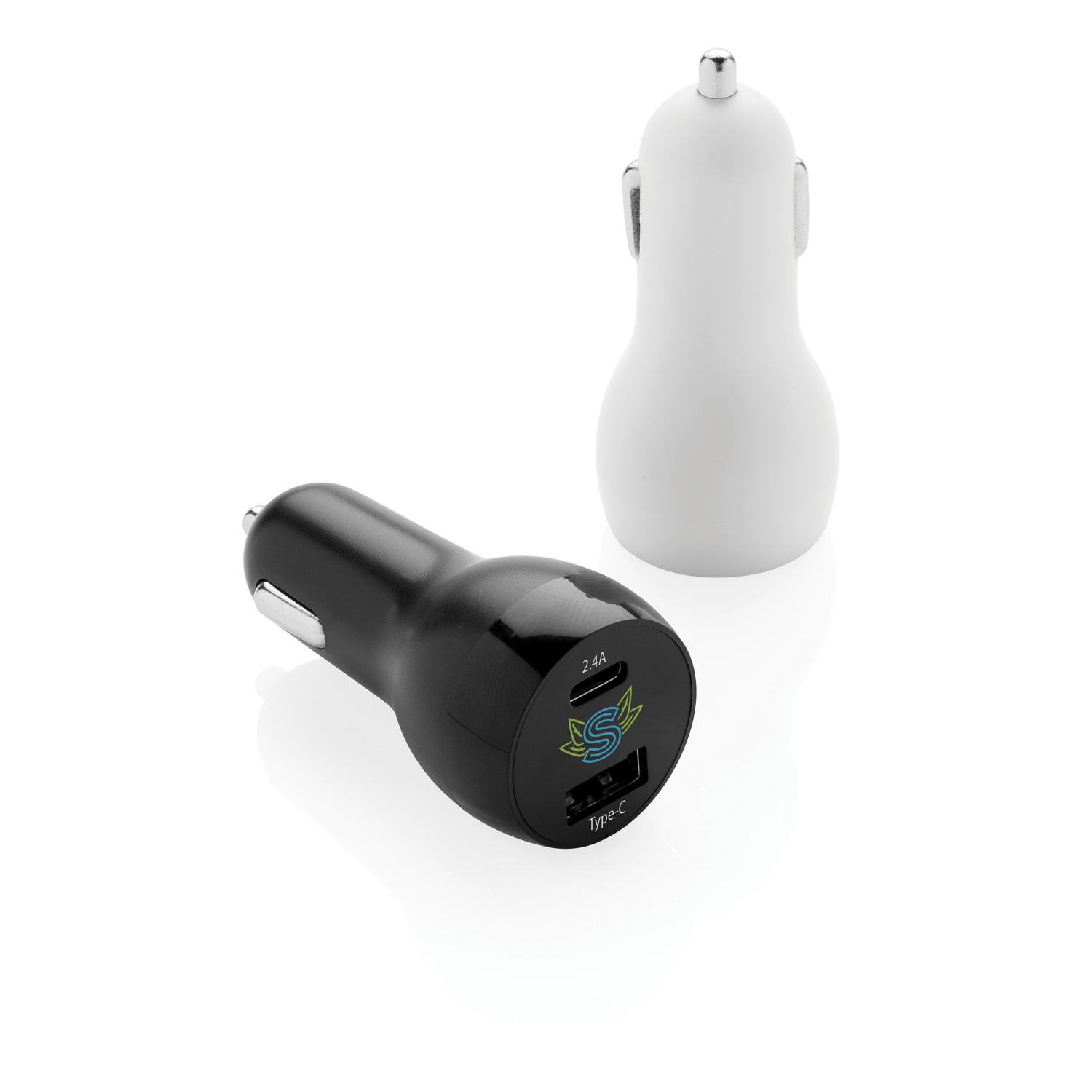 Зарядное устройство для автомобиля с двумя выходами, Type-C и USB, изготовлено из прочного ABS-пластика. С помощью него можно легко зарядить любое мобильное устройство в дороге. Матовый корпус дополнен стильной глянцевой вставкой. Выход 5V/2.4A.