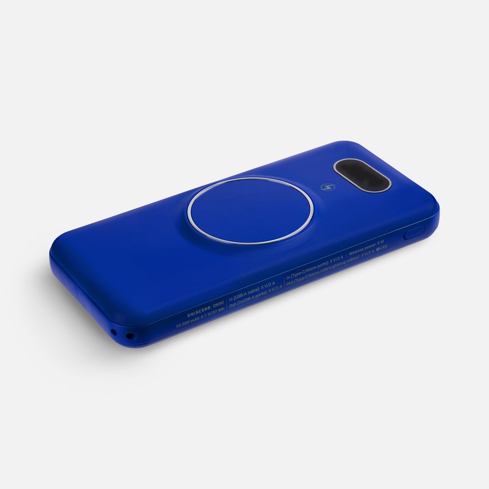 Интересная особенность аккумуляторов Omni — совершенно автономная конструкция: встроенные кабели позволяют заряжать как самые разные электронные устройства, так и сам аккумулятор. Если же смартфон поддерживает беспроводной заряд, то кабель вообще не нужен. Наглядный индикатор заряда в процентах.- Литий-полимерный аккумулятор