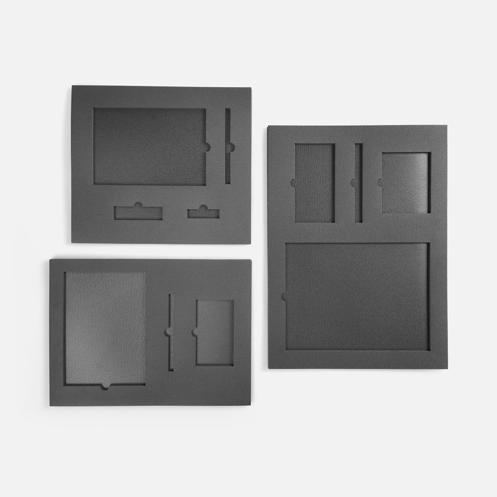 Точность исполнения ложемента и качественные материалы превратят обычную коробку в стильный презентационный кейс. С ложементами Slim ваш подарок будет выглядит аккуратно и продуманно. Это не просто упаковка — это финальный штрих, который делает любой набор запоминающимся подарком.Ложемент, изготовленный из материала Izolon 500 черного цвета, представляет собой многослойную конструкцию, состоящую из нижнего слоя толщиной 5 мм и верхнего слоя толщиной 10 мм. В соответствии с утвержденным макетом, проемы для размещения предметов могут быть спроектированы как в одном, так и в обоих слоях.