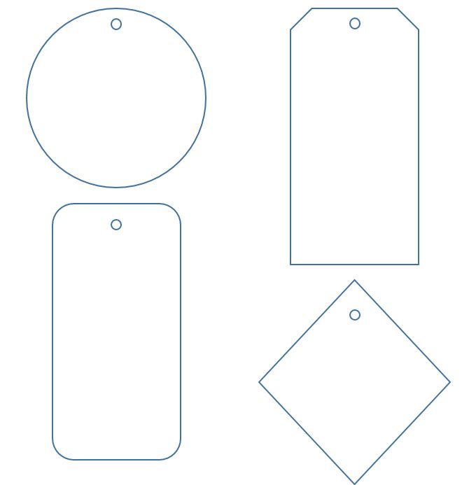 - Для удобства крепления можно добавить круглые или овальные отверстия внутри этикетки. Минимальный диаметр отверстия 4 мм