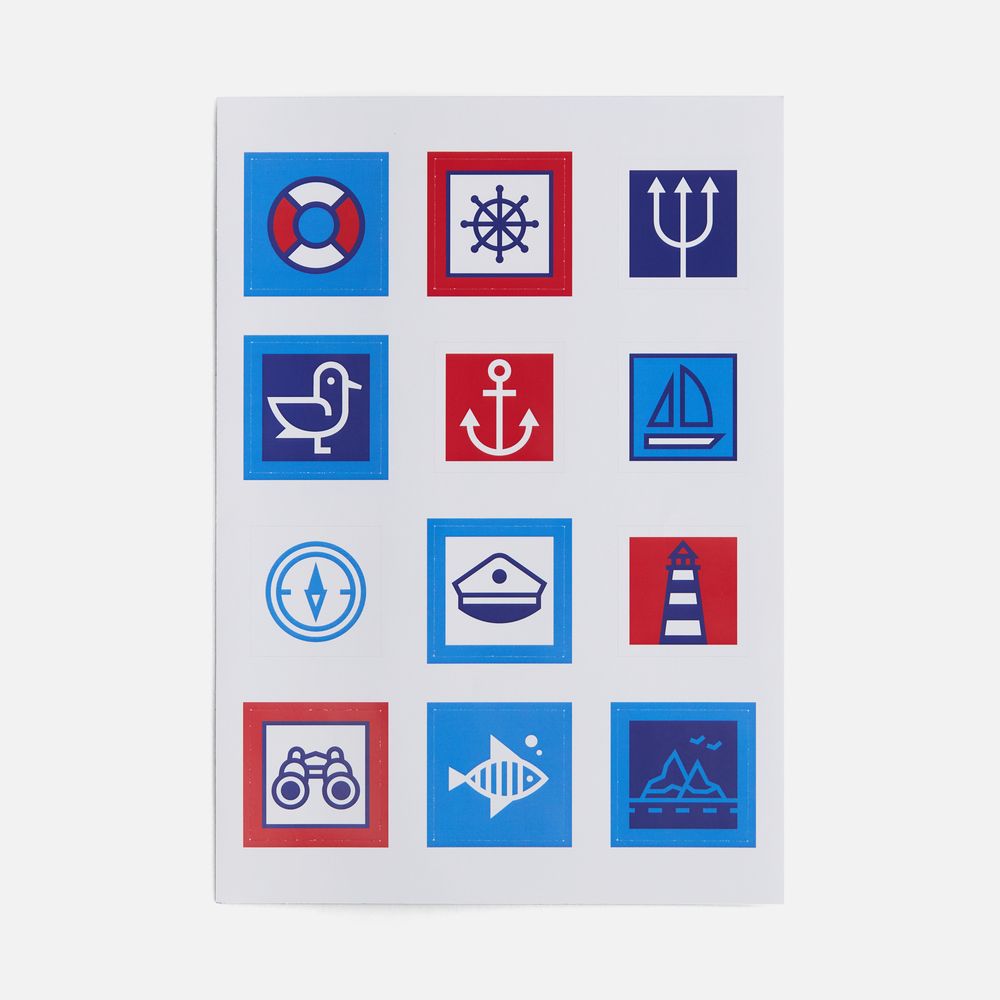 В каждой части общего рисунка изображены главные символы, связанные с морской отраслью -