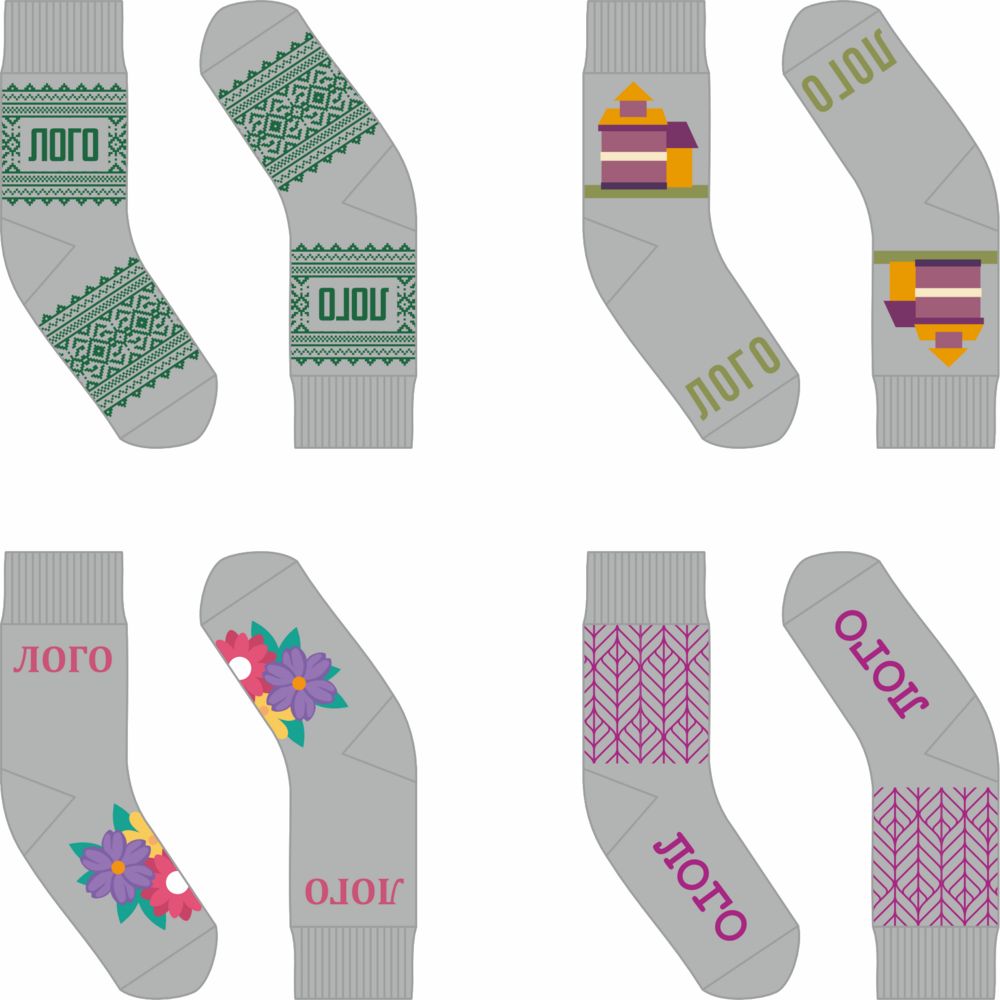 Носки махровые с индивидуальным дизайном. В стоимость изделия входит изготовление дизайна в 2–5 цветов на базовом цвете меланж.