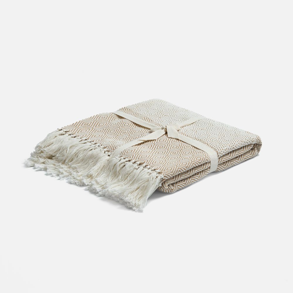 Приглушенные оттенки и динамичный геометрический рисунок на пледе Ladakh настраивают на созерцание, а его уютная мягкость — на приятный отдых в уюте и тепле.