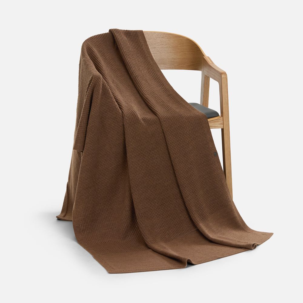 Плед Voyage соткан из мягкого сочетания шерсти и акрила — нежный, теплый и невесомый, он идеален для уютных вечеров. Кнопка позволяет превратить его в элегантную накидку, когда воздух становится прохладнее.