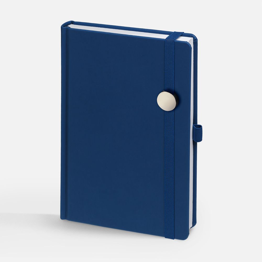 Ежедневник с твердой обложкой без поролона, выполнен из материала Soft Touch Ultra, синий НН, дополнен резинкой шириной 1 см, петлей-резинкой для ручки, капталом и ляссе синего цвета.