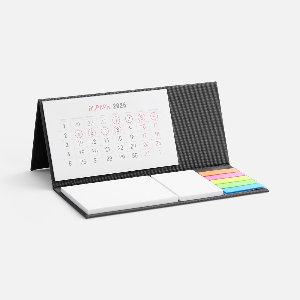 Настольный календарь-домик из материала Canyon с разноцветными стикерами, темно-серый ЕЕ.- Календарь 19х21 см, 12 листов.