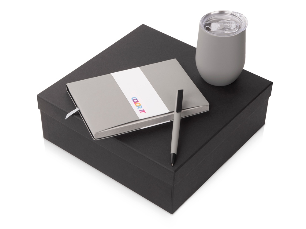 Color It — линейка, в которую входят хиты мерча в десяти самых популярных цветах. Еще никогда собрать сет под свой брендбук не было так просто. Широкая цветовая палитра серии позволяет создать идеальный набор в едином оттенке Pantone. Все товары имеют тактильно приятное покрытие софт-тач. Сет поставляется в коробке: мы продумали все, включая подарочную упаковку, за вас — осталось нанести лого! Термокружка оснащена крышкой-слайдером с силиконовым кольцом. Благодаря вакуумной изоляции и двойным стенкам, она сохраняет напитки горячими в течение 6 часов, а холодными - 12 часов. Бизнес-блокнот в гибкой обложке имеет ляссе в тон обложки и среза. Бумажный блок разлинован в линейку и выполнен из бумаги, полученной из древесины из специальных восполняемых лесных ресурсов, имеет сертификат FSC. Тонкое письмо ручки обеспечивается пишущим узлом с толщиной письма 0,5 мм с нажимным механизмом. Ручка имеет сменный стержень, поэтому такой мерч прослужит дольше обычной одноразовой ручки, долго напоминая о вас клиентам. - объём термокружки: 370 мл; - блокнот А5 128 листов; - ручка с необычным слайдером; - подарочная упаковка из картона, оклеенного дизайнерской бумагой уже включена в набор Трафаретная печать (1 цвет (цветные изделия)) на данный товар осуществляется бесплатно. Оплачивается только настройка оборудования в размере 9100 рублей на весь тираж.