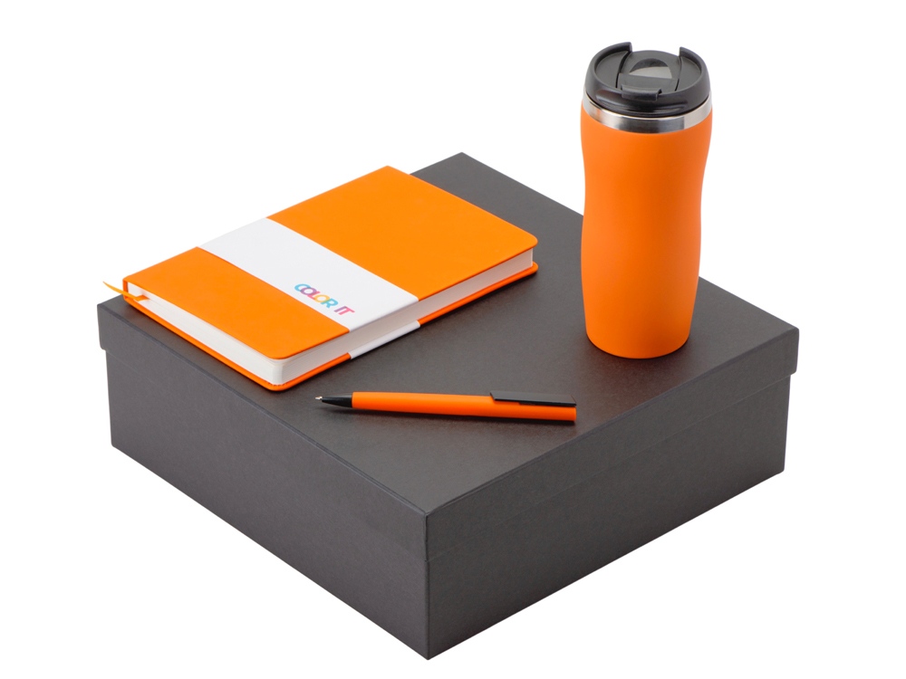 Color It — линейка, в которую входят хиты мерча в десяти самых популярных цветах. Еще никогда собрать сет под свой брендбук не было так просто. Широкая цветовая палитра серии позволяет создать идеальный набор в едином оттенке Pantone. Все товары имеют тактильно приятное покрытие софт-тач. Сет поставляется в коробке: мы продумали все, включая подарочную упаковку, за вас — осталось нанести лого! Термокружка оснащена плотно завинчивающейся крышкой, которая исключает проливание содержимого. Откидной клапан позволяет пить, не снимая крышку. Сохранение температуры осуществляется благодаря вакуумной изоляции и двойным стенкам. Бизнес-блокнот в твёрдой обложке с магнитным держателем для ручки имеет ляссе в тон обложки и среза. Бумажный блок разлинован в линейку и выполнен из бумаги, полученной из древесины из специальных восполняемых лесных ресурсов, имеет сертификат FSC. Тонкое письмо ручки обеспечивается пишущим узлом с толщиной письма 0,5 мм с нажимным механизмом. Ручка имеет сменный стержень, поэтому такой мерч прослужит дольше обычной одноразовой ручки, долго напоминая о вас клиентам. - объём термокружки: 350 мл; - блокнот А5 128 листов; - ручка с необычным слайдером; - подарочная упаковка из картона, оклеенного дизайнерской бумагой уже включена в набор. Трафаретная печать (1 цвет (цветные изделия)) на данный товар осуществляется бесплатно. Оплачивается только настройка оборудования в размере 9100 рублей на весь тираж.