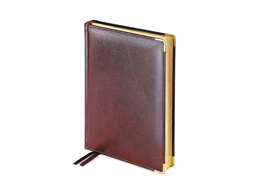 Полудатированный ежедневник Imperium от бренда Bruno Visconti - это качественный корпоративный подарок по выгодной цене, произведенный специально под персонализацию. Представлен в универсальном формате А5. Классический деловой ежедневник линии Imperium в обложке из черной рециклированной кожи – образец элегантности. Гладкую тонкую фактуру кожи подчеркивает декоративная строчка по контуру и металлические закругленные уголки под золото. Респектабельность и роскошь этого ежедневника усилена за счет металлизированного золотистого обреза и бордовых шелковых ляссе. В ежедневнике есть полезная справочная информация и телефонная книга, а также 416 страниц для записи идей, мыслей и составления рабочих планов. Для изготовления страниц используется качественный бежевый офсет повышенной плотности (70 г/кв м), которая производится японской фирмой Daiwa и подходит для всех видов чернил. Ежедневник можно персонализировать с помощью тиснения обложки - золотой или серебряной фольгой. Наши ежедневники помогут быть успешным и эффективным в карьере и повседневной жизни! Тиснение (Фольга) на данный товар осуществляется бесплатно. Оплачивается только настройка оборудования в размере 8700 рублей на весь тираж.