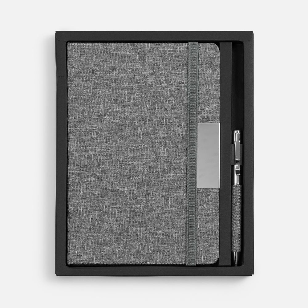 - блокнот на 160 страниц в линейку с металлической шильдой и резинкой