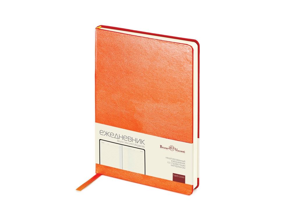 Ежедневник выпускается в универсальном формате А5. Размер обложки – 144*215 мм. В недатированном блоке для записей 320 страниц из тонированной бумаги бежевого цвета. Бумага плотностью 70 грамм. На 16 листах представлен значительный объем справочной информации на русском языке, полезной для бизнеса и повседневной жизни. Дни недели указаны сокращенно на русском языке. Отрывные листы, дополненные микроперфорацией, расположены в конце ежедневника. Тиснение (Блинт) на данный товар осуществляется бесплатно. Оплачивается только настройка оборудования в размере 6200 рублей на весь тираж.