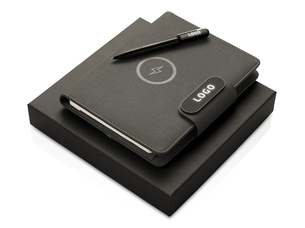 Подарочный набор Twilight — стильный и современный бизнес-подарок, который в полной мере воплощает идею многофункциональности. Он состоит из органайзера формата А5, с помощью которого можно заряжать гаджеты как беспроводным способом, так и через кабель, фиксировать телефон для просмотра видео или проведения конференций, хранить ручку и делать записи, а также самой металлической ручки. Клапан органайзера и в верхняя часть ручки светятся при гравировке логотипа, что делает набор стильным, а лого более ярким и заметным. Практичный и технологичный аксессуар, который в состоянии заменить сразу несколько вещей. - Встроенный пауэрбанк емкостью 5000 мАh. - Возможность зарядки как беспроводным способом, так и через кабель. - Удобная магнитная застежка. - Качественные материалы. - Подставка для телефона. - Блокнот для записей 64 л. - Светящийся при гравировке логотип. Гравировка (оптоволоконный лазер) (Без чернения) на данный товар осуществляется бесплатно. Оплачивается только настройка оборудования в размере 2700 рублей на весь тираж.