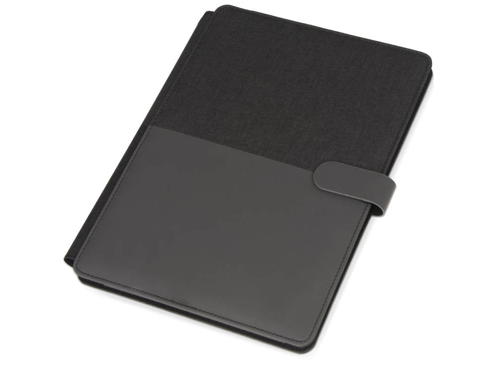 Стильная папка для документов формата А4 с комбинированной обложкой из текстиля и искусственной кожи. Удобный внутренний органайзер имеет карман на застёжке для планшета, блокнот для записей с линованной бумагой. Тиснение (Блинт) на данный товар осуществляется бесплатно. Оплачивается только настройка оборудования в размере 8700 рублей на весь тираж.