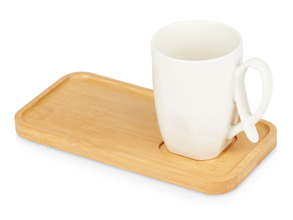Чашка изготовлена из костяного фарфора, - более тонкого и изящного по сравнению с обычной глиняной керамикой, и прекрасно подойдёт не только для чая, но и для кофе (объём 250 мл). Бамбуковое блюдце имеет выемку для чашки, поэтому Deny можно аккуратно разместить на столе, не занимая много места. Также на блюдце удобно класть пирожные, шоколад или печенье благодаря его прямоугольной форме. Чайная пара от бренда Eat&Bite смотрится эстетично и красиво из-за нестандартного дизайна - фигурной ручки чашки и квадратного донышка, которое точно подходит под выемку блюдца. - стильный и необычный дизайн; - объём чашки 250 мл; - костяной фарфор и бамбук; - компактное хранение; - блюдце для пирожных или печенья. Гравировка (CO2 лазер) (Без чернения) на данный товар осуществляется бесплатно. Оплачивается только настройка оборудования в размере 1100 рублей на весь тираж.