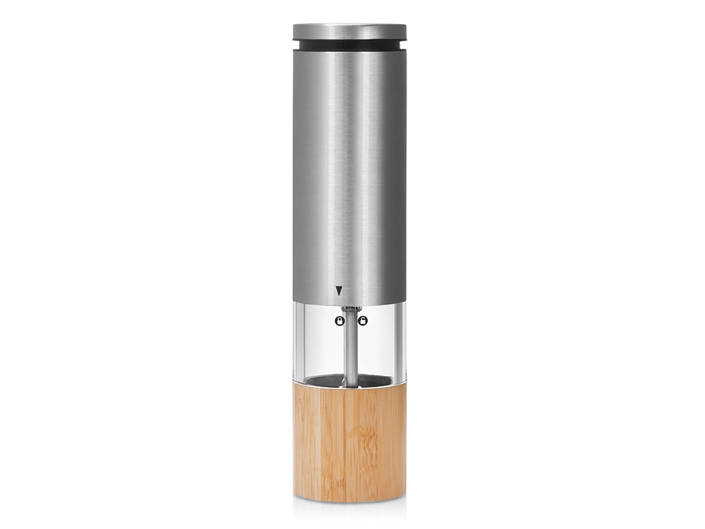 Электрическая мельница для специй Clove из нержавеющей стали и бамбука: стиль и удобство на вашей кухне! Элегантный и практичный корпоративный подарок, который добавит вкуса в любую кухню — электрическая мельница для специй, сочетающая трендовый дизайн и современную функциональность. Работает от 6 батареек AAA и легко справляется с солью, перцем и другими специями. - Универсальное применение: подходит для перца, соли и любых сухих специй - Прозрачная секция корпуса: всегда видно, сколько продукта осталось - Работа от 6 батареек AAA: никаких проводов — удобно дома и на даче - Механизм помола одним нажатием: свежемолотые специи — быстро и без усилий - Объём 30г: оптимально для ежедневного использования - Материалы премиум-класса: благородный бамбук, нержавеющая сталь и прочный прозрачный пластик Мельница легко впишется как в современный интерьер, так и в более классическую обстановку, делая ее отличным подарком для коллег, партнёров и клиентов, который точно не останется без внимания. Гравировка (оптоволоконный лазер) (Без чернения) на данный товар осуществляется бесплатно. Оплачивается только настройка оборудования в размере 1100 рублей на весь тираж.