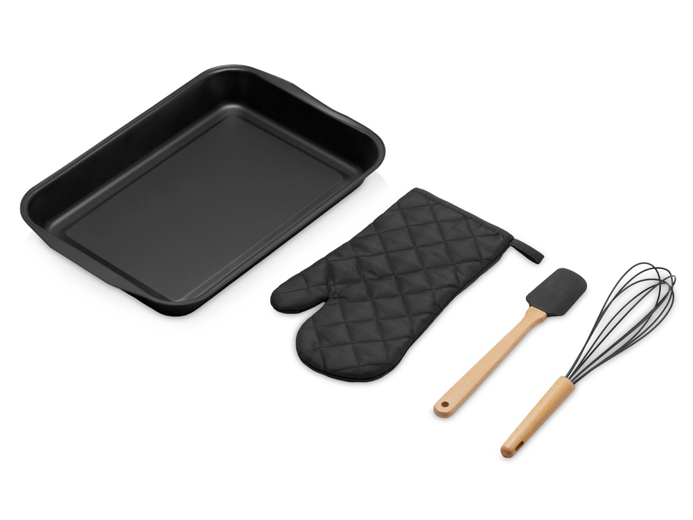 Кондитерский кухонный набор Biscotti незаменим на кухне любого кулинара. Большая форма для запекания отлично подойдёт для любых запеканок и пирогов, - их точно хватит на большую семью! Венчик и лопатка изготовлены из букового дерева - очень прочной и долговечной древесины, и пищевого силикона, который не впитывает жир, не царапает поверхности, а также легко моется! Приборы удобно ложатся в ладонь, обеспечивая комфорт при приготовлении. Варежка с одной стороны имеет гладкую поверхность, которая позволяет брендировать её термотрансфером. - полезный мерч; - высокое качество материалов; - большой размер формы для запекания: 41x27,5x4,2 см. Термотрансфер (1 цвет (цветные изделия)) на данный товар осуществляется бесплатно. Оплачивается только настройка оборудования в размере 10000 рублей на весь тираж.