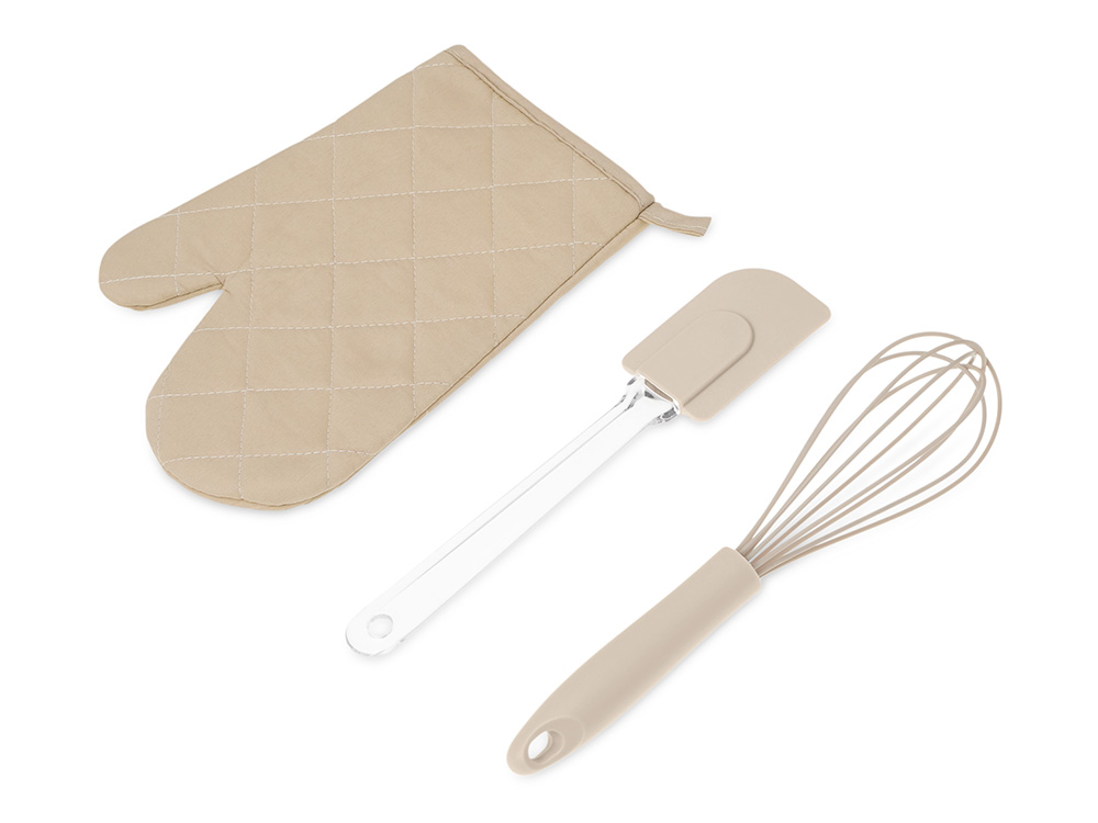 Набор Canele состоит из трёх предметов, без которых не обходится приготовление ни одного пирога или торта: венчика для взбивания яиц или крема, лопатки и прихватки для горячего. Силиконовая лопатка не царапает посуду, безопасна при нагревании, и к ней не прилипает тесто. Венчик также сверху покрыт силиконом, что позволяет его использовать с любыми ёмкостями, не боясь их повредить. Прихватка с одной стороны стёганая, а с другой абсолютно гладкая, благодаря чему на ней эффектно будет смотреться нанесённое изображение. Все предметы сложены в мешочек из неокрашенного хлопка, который также можно брендировать. • Функциональность • Лаконичный дизайн • Большая поверхность под нанесение Тампопечать (1 цвет (цветные изделия)) на данный товар осуществляется бесплатно. Оплачивается только настройка оборудования в размере 4500 рублей на весь тираж.