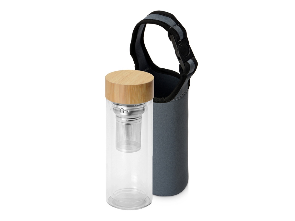 Герметичный термос Badachu идеально подойдет для любителей горячих напитков. Благодаря двойным стенкам из боросиликатного стекла он не обжигает руки и не влияет на вкус напитка. Чай и другие травы удобно заваривать в составном ситечке из пищевой нержавеющей стали. При необходимости можно оставить только верхнее маленькое ситечко или убрать его совсем. В комплект входит стильный неопреновый чехол для дополнительной защиты термоса и удобства переноски. - Экологичные материалы: боросиликатное стекло, пищевая сталь 304 и бамбук. - Двойные стенки. - Сохраняет тепло и не обжигает руки. - Составное ситечко-фильтр. - Удобный и стильный чехол. Трафаретная печать круговая (1 цвет (цветные изделия)) на данный товар осуществляется бесплатно. Оплачивается только настройка оборудования в размере 4500 рублей на весь тираж.