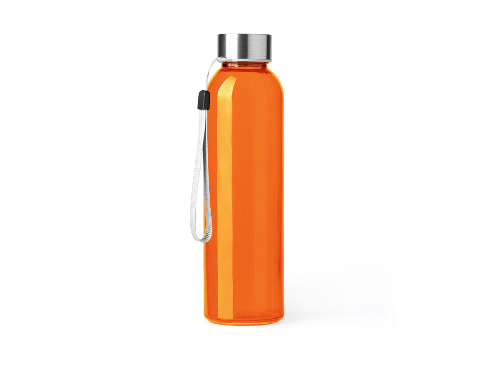 Стеклянная бутылка емкостью 500 мл. Большое разнообразие цветов, с завинчивающейся крышкой из нержавеющей стали и удобной для транспортировки благодаря ремешку серого цвета. Трафаретная печать круговая (1 цвет (цветные изделия)) на данный товар осуществляется бесплатно. Оплачивается только настройка оборудования в размере 6400 рублей на весь тираж.