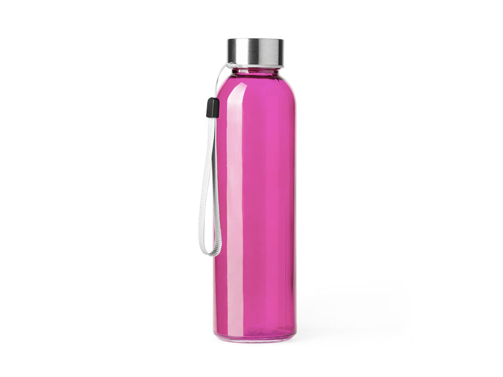 Стеклянная бутылка емкостью 500 мл. Большое разнообразие цветов, с завинчивающейся крышкой из нержавеющей стали и удобной для транспортировки благодаря ремешку серого цвета. Трафаретная печать круговая (1 цвет (цветные изделия)) на данный товар осуществляется бесплатно. Оплачивается только настройка оборудования в размере 6400 рублей на весь тираж.