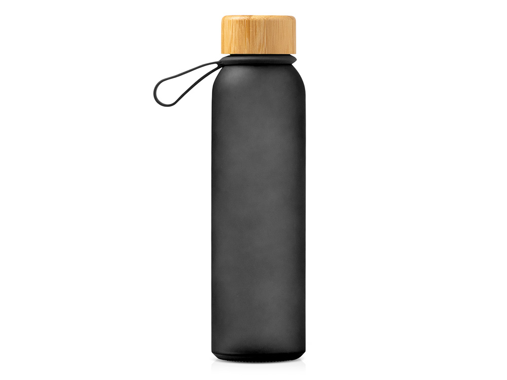 Полупрозрачная бутылка из переработанного стекла. Бамбуковая крышка с держателем. Объём: 500 мл. Поставляется в индивидуальной коробке. Трафаретная печать круговая (1 цвет (цветные изделия)) на данный товар осуществляется бесплатно. Оплачивается только настройка оборудования в размере 6400 рублей на весь тираж.