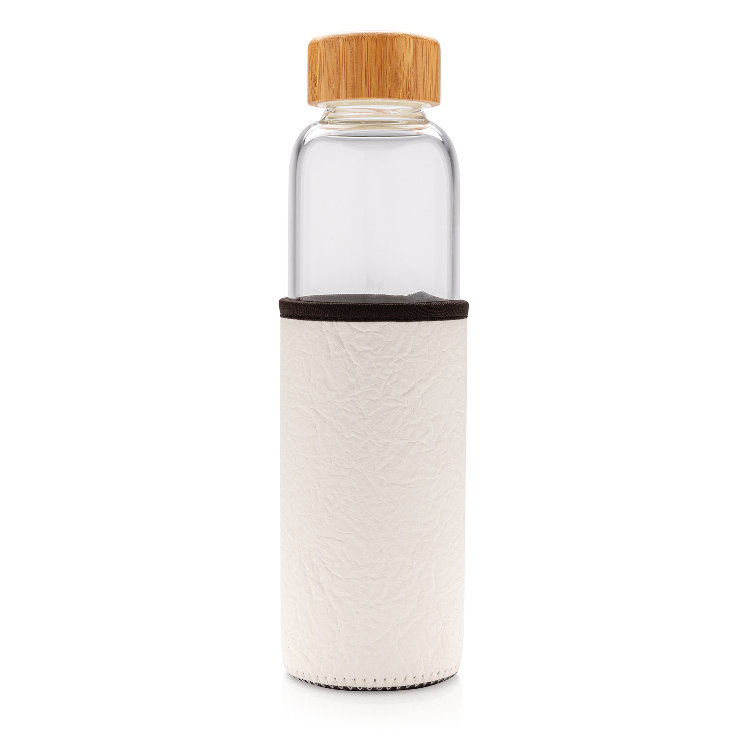 Стеклянная бутылка с текстурированным чехлом из PU идеально подойдет тем, кто не хочет пить из пластика. Стеклянная бутылка закрывается герметичной крышкой из бамбука. Широкое горлышко позволяет комфортно пользоваться бутылкой, а нескользящий чехол из PU защищает стекло от внешнего воздействия и добавляет стильный штрих. Объем 550 мл.