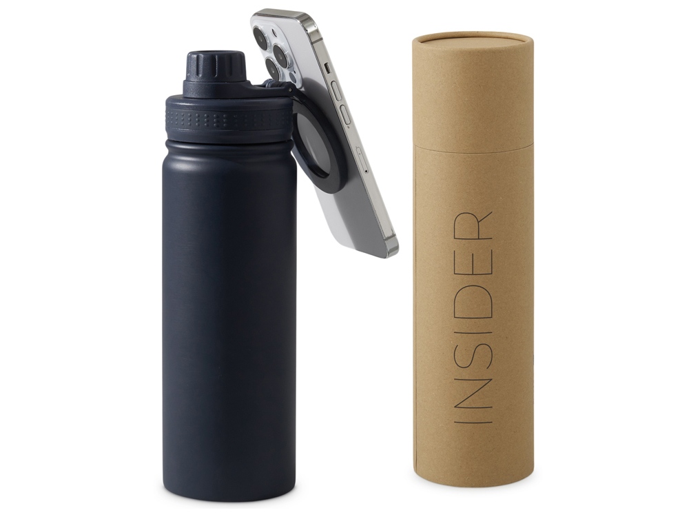 Современные технологии и стильный дизайн объединились в одной бутылке! Спортивная бутылка с магнитным держателем MagSafe поможет вам всегда держать водный баланс в норме и сделает жизнь удобнее. Благодаря магнитному держателю бутылка надежно удерживает iPhone 12 версии и новее. Магнитное крепление подходит также и для любого смартфона, т.к. в комплекте есть металлическое кольцо с клейким слоем. Кольцо наклеивается на заднюю крышку или чехол смартфона, и вы можете крепить смартфон к бутылке за секунду. Объем 600мл. Для кого эта бутылка? • Для спортсменов: Магнитное крепление позволяет следить за тренировками, слушать музыку или смотреть видео, не отвлекаясь на удерживание телефона в руках. • Для путешественников и автовладельцев • Для офисных и удаленных работников • Для всех, кто заботится об экологии Ключевые особенности: • Магнитная ручка - держатель MagSafe для iPhone и других смартфонов (если наклеить кольцо-стикер из комплекта) • Нетеряемая герметичная крышка • Сохраняет тепло до 11 часов, холод до 22 часов • Двойные стенки и вакуумная изоляция • Экологичные и безопасные материалы: пищевой пластик полипропилен и высококачественная нержавеющая сталь 304 марки Трафаретная печать круговая (1 цвет (цветные изделия)) на данный товар осуществляется бесплатно. Оплачивается только настройка оборудования в размере 6400 рублей на весь тираж.