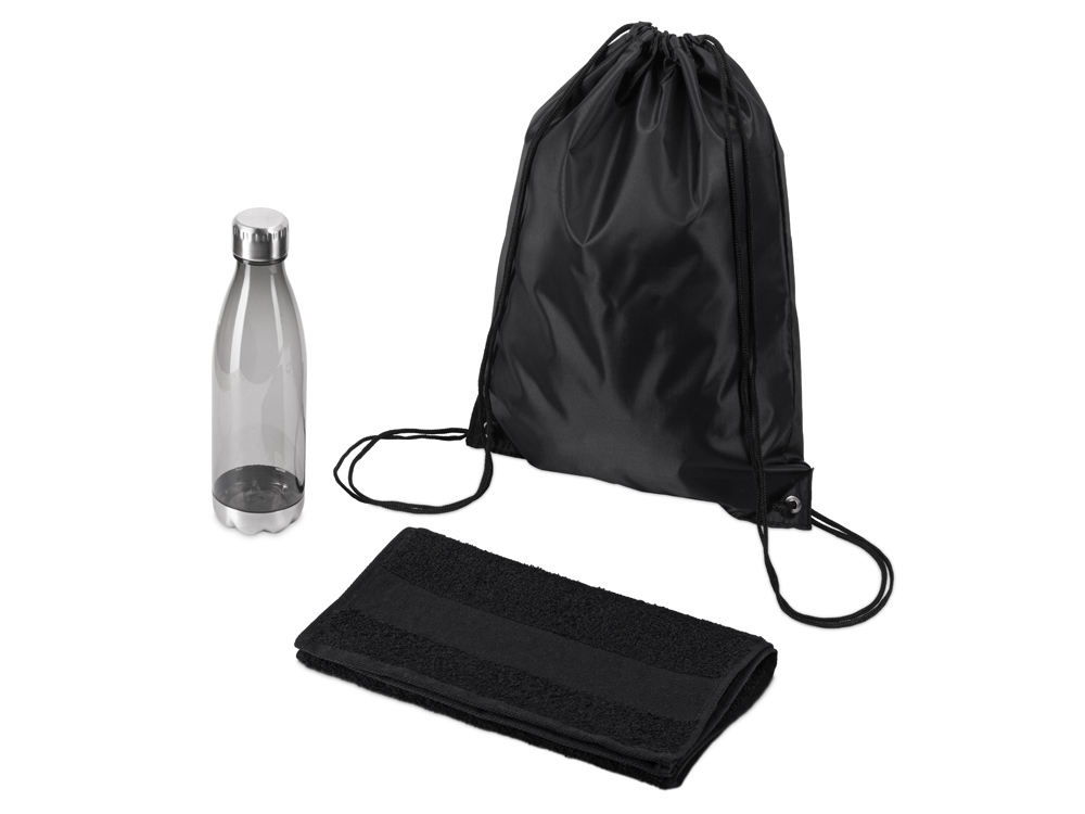 Универсальный спортивный набор будет актуален в любом виде спорта. Бутылка для воды позволит брать с собой не только воду, но и тонизирующие напитки или коктейли и поможет освежиться в любой момент. Тритан, из которого изготовлена бутылка, не искажает вкус и запах напитков, являясь абсолютно безопасным для человека. Натуральное полотенце из 100% хлопка не вызовет аллергии и не навредит коже. Вместительный рюкзак пригодится, чтобы всегда держать под рукой всё необходимое для тренировки. • объём бутылки: 700 мл • размер полотенца: 30х70 см • практичный набор для спортивного мерча Трафаретная печать (1 цвет (цветные изделия)) на данный товар осуществляется бесплатно. Оплачивается только настройка оборудования в размере 10000 рублей на весь тираж.